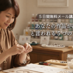 2025年12月26日 / 最終更新日時 : 2026年1月3日 misato☆ アクセサリー作家 「あなたの作品がほしい」と言われる5つのステップ」無料メール講座募集中 一生懸命作っているのに、選ばれない 「素敵だけど、どこかで見たことあるかも…」 そんな風にスルーされる毎日に、終止符を打ちませんか? インスタを更新しても、指を止められず流されていく。 マルシェに出店しても、一瞬目が合う […]